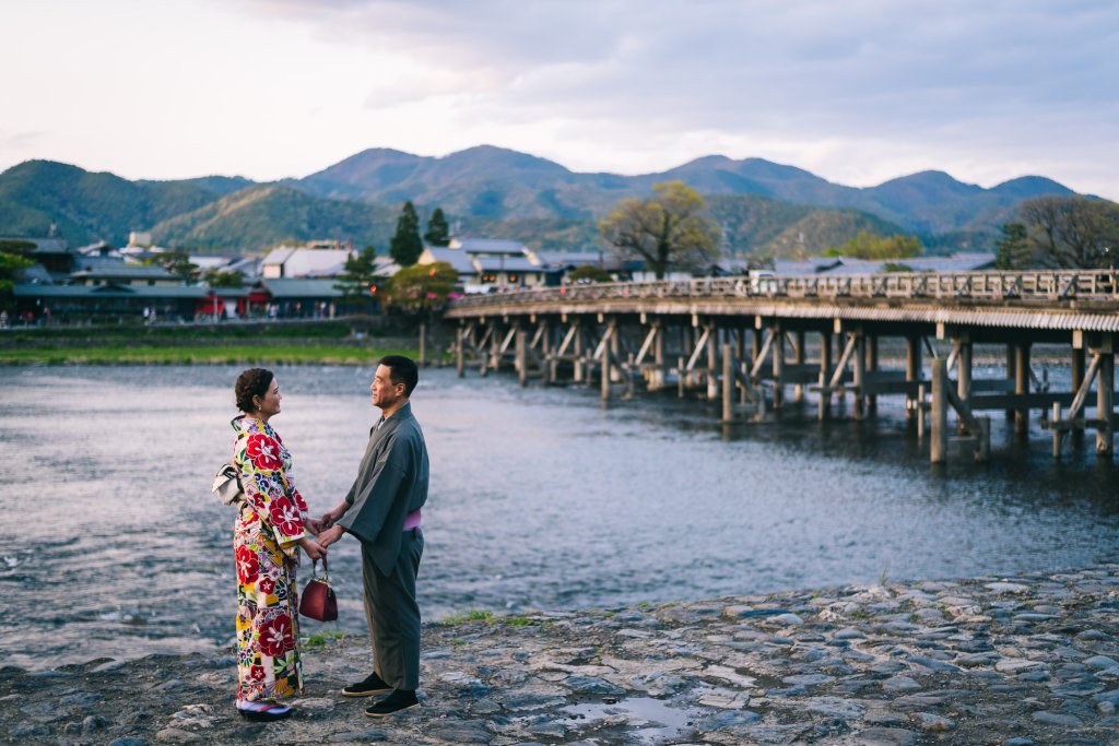 嵐山在京都市的西邊, 車程並不遠, 以美景聞名, 選擇嵐山嵯峨地區與Wusen預約和服拍攝的旅人們 快速選擇適…
